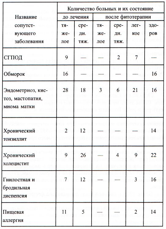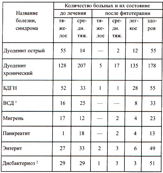 Результаты применения фитотерапии при дуодените, БДГН и сопутствующим им заболеваниям и синдромам