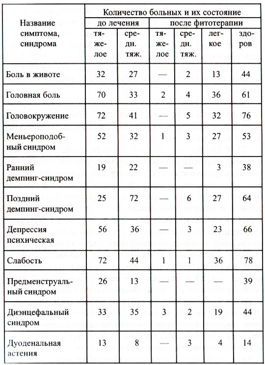 Подробности применения, статистика, казуистика в книгах и опубликованных трудах [ ]. Лечение моторно-двигательного синдрома в отрыве от этиологии, патогенеза болезней двенадцатиперстной кишки (острый, хронический дуоденит, язва двенадцатиперстной кишки, аномалия двенадцатиперстной кишки) чревато опасными для жизни хирургическими операциями, тяжелыми осложнениями (механическая желтуха, синдром дуоденально - гормональной недостаточности, стеноз двенадцатиперстной кишки, острый и хронический панкреатит). Таблица №8 фито- и фитохитодезтерапия на стр.207 книги "Записки фитотерапевта", книга 4, изд.3. Таблица №5 из той же книги-- стр.180, табл.№6-- стр.182, табл. №7-- стр.184--185.