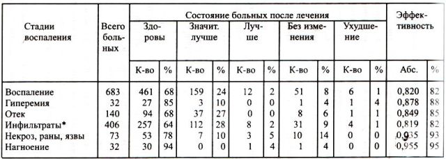 Эффективность фитотерапии и фитохитодезтерапии при различных стадиях воспаления